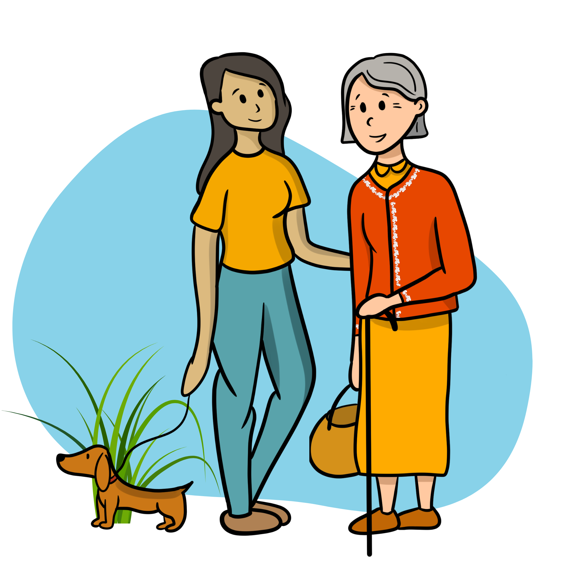 Votre mère âgée ne veut plus sortir seule, elle a besoin d'un accompagnement durant ses promenades. Son médecin lui dit qu’il est important de marcher régulièrement. Vous habitez à l’autre bout de la ville et marchez avec elle une fois par semaine.